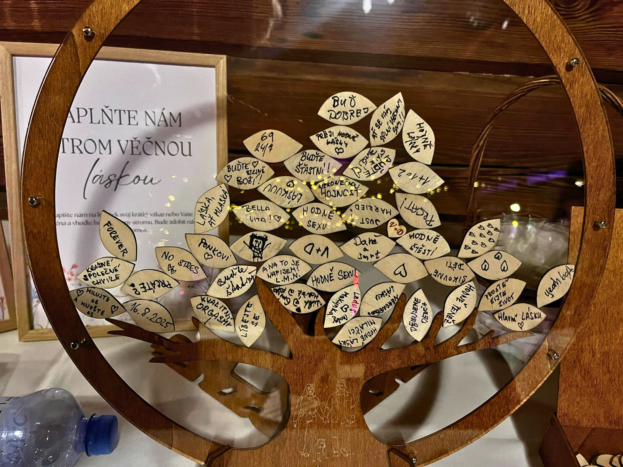 – Kateřina S.„Objednali jsme dřevěný strom s plexisklem na naši svatbu a jsme nadšení. Hosté psali na malé dřevěné lístečky vzkazy, a vznikla tak krásná a osobní památka. Výrobek je kvalitní, bytelný a lze ho přizpůsobit podle vlastních představ. Skvělá komunikace a jednoduché doladění detailů. Originální dekorace vhodná nejen na svatby, ale i jiné oslavy nebo jako dárek. Rozhodně doporučuji!“